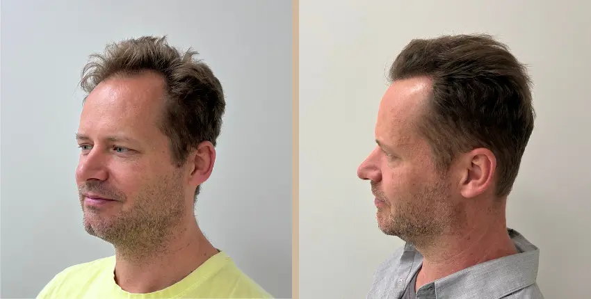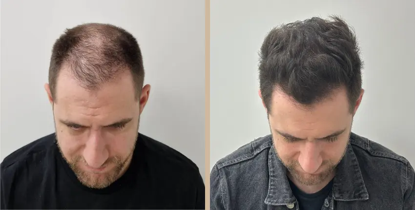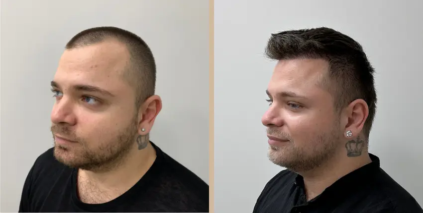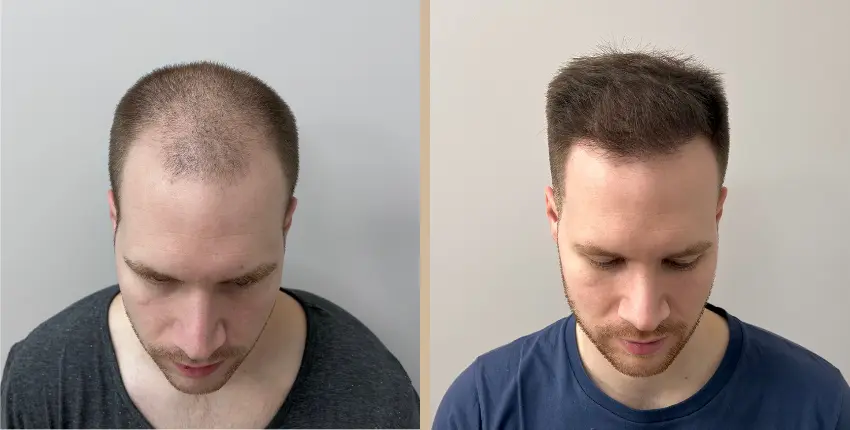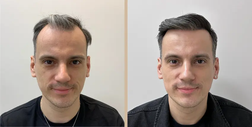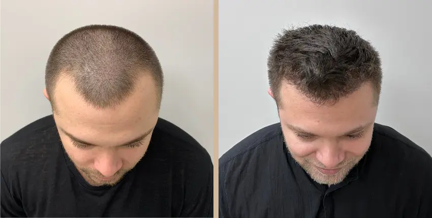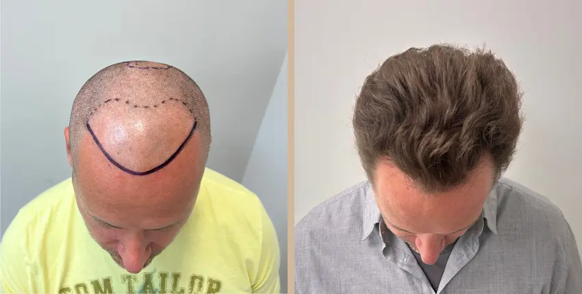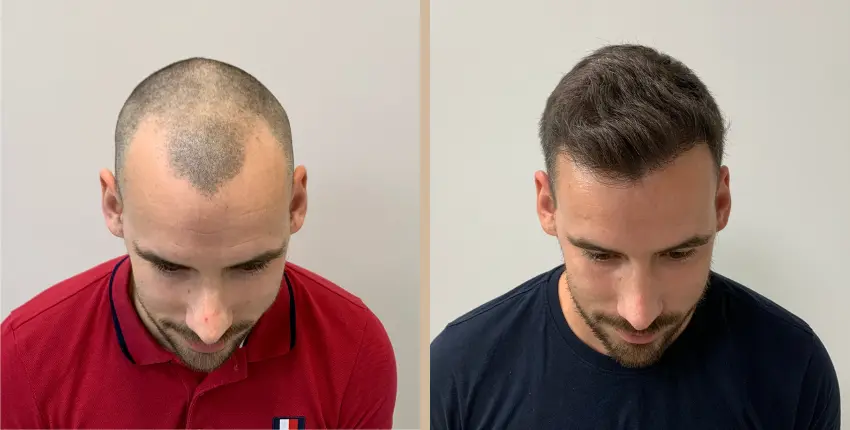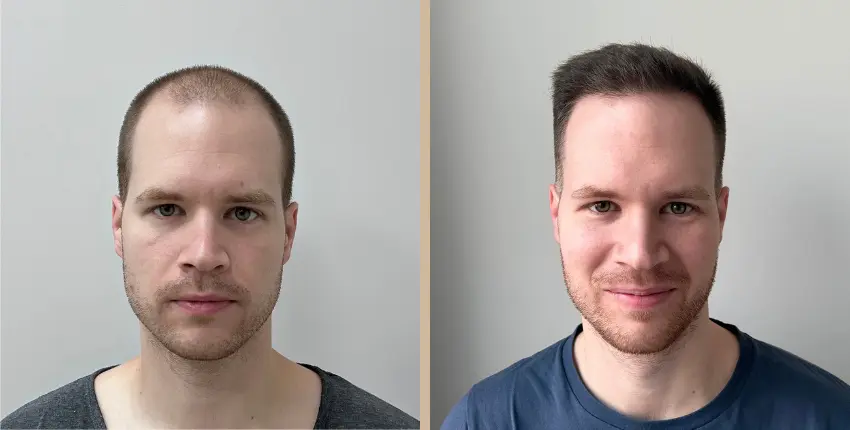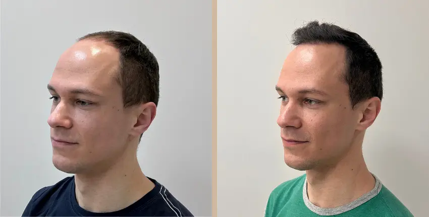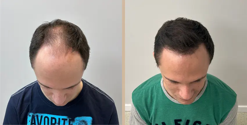 Tekintse meg, milyen eredményeket lehet elérni a hajtranszplantáció segítségével. A kopaszodó felület ritkasága egyes esetekben szinte teljesen megszüntethető. Kritikusabb esetekben azonban ha a donor terület megengedi, akkor érdemes kétnapos beavatkozásban gondolkozni, melynek során akár 8-10 ezer hajszál beültetése is lehetséges.