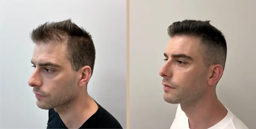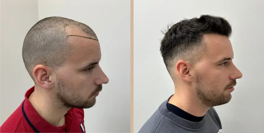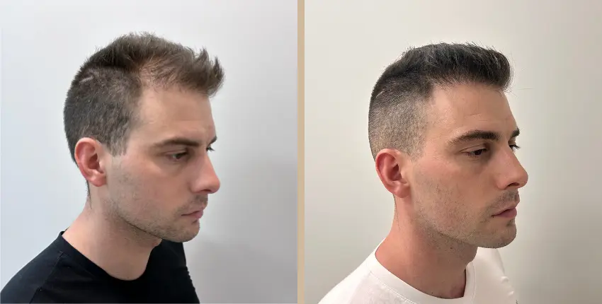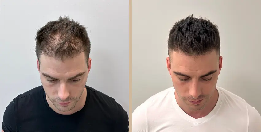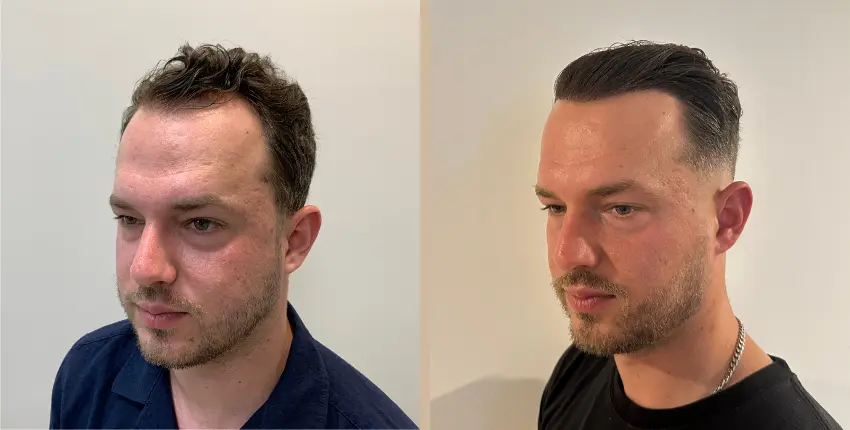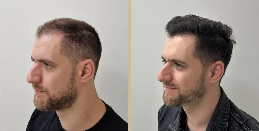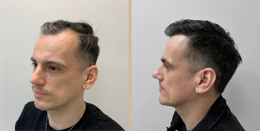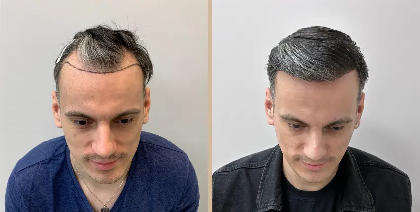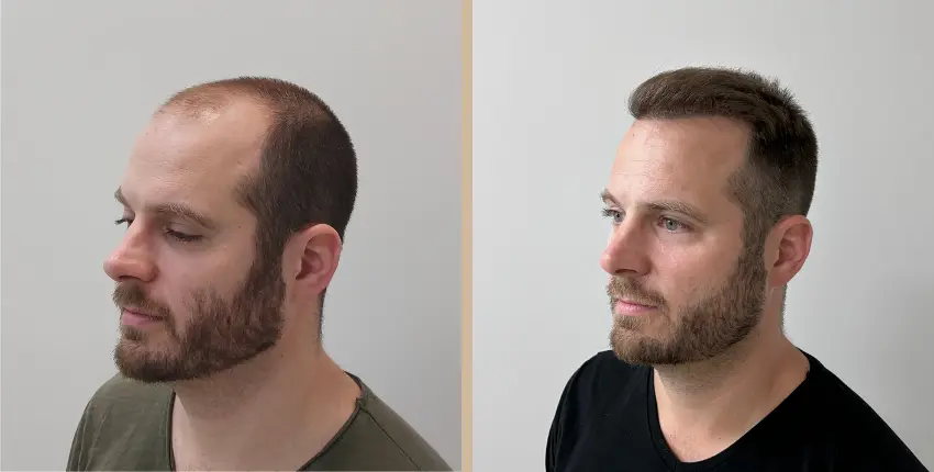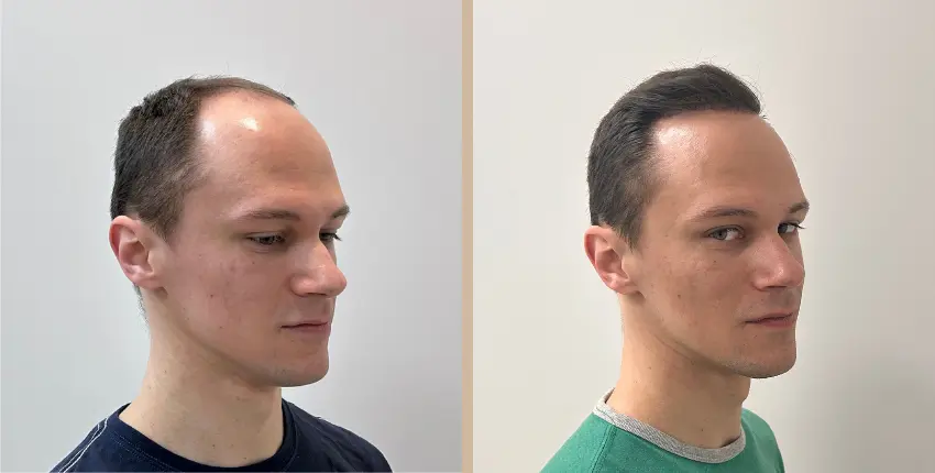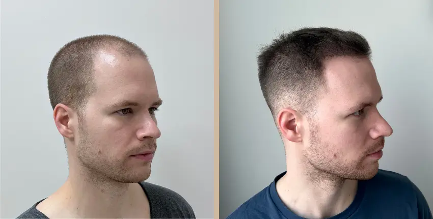 Tekintse meg, milyen eredményeket lehet elérni a hajtranszplantáció segítségével. A kopaszodó felület ritkasága egyes esetekben szinte teljesen megszüntethető. Kritikusabb esetekben azonban ha a donor terület megengedi, akkor érdemes kétnapos beavatkozásban gondolkozni, melynek során akár 8-10 ezer hajszál beültetése is lehetséges.